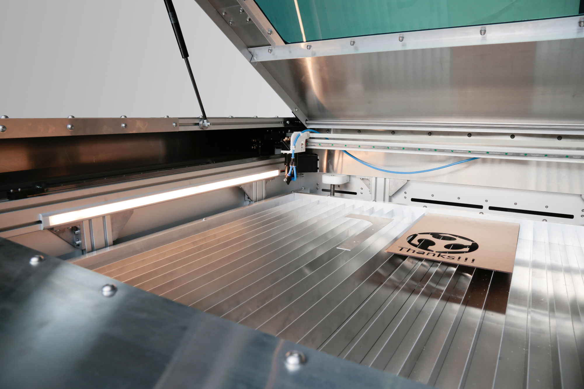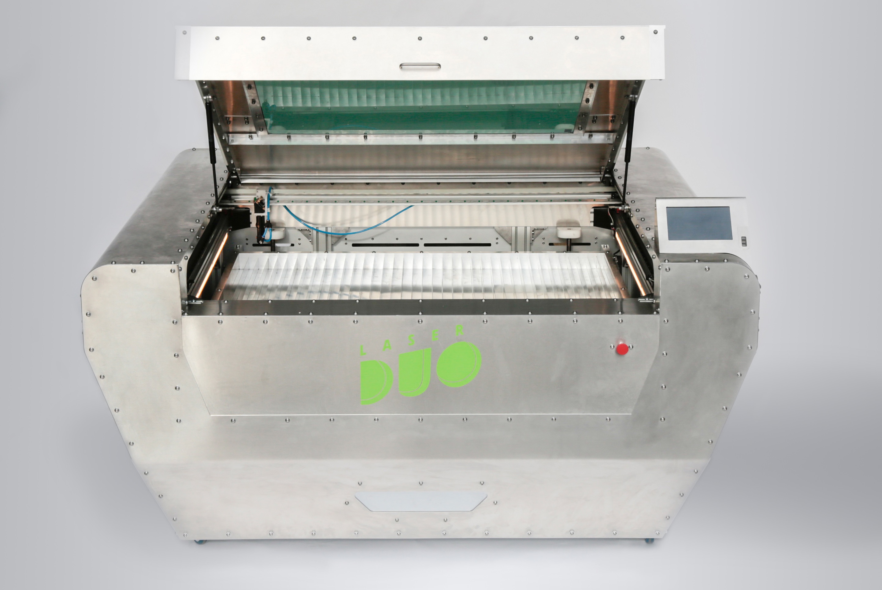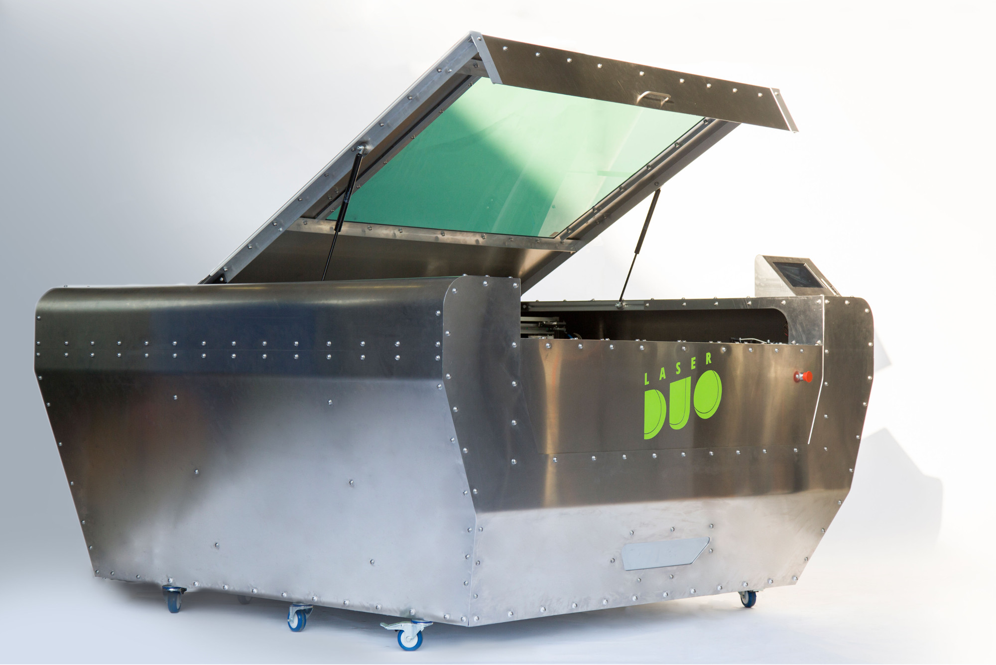 LaserDuo was developed by having in mind the quality of the components, the solidity of the build and the user safety. It offers a fully metallic frame made out anodized aluminum, safety switches, a double shielded enclosed housing made with 1.5mm aluminium sheets, HiWin linear guides and a certified protective window from LaserVision. All the bodywork and most of the mechanical components are made in Germany. The design allows the user to access specific areas of the machine for maintenance and to replace parts.